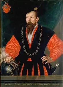 Hans Franz Nageli or Hans Franz Nägeli (1497 in Aigle – 9 January 1579 in Bern) was a Swiss politician and military leader who was a prominent force in Bern for four decades. He captained the Bernese forces in the campaigns against the forces of the bandit Gian Giacomo Medici, and the campaign in Valais during the Wars of Kappel. He also commanded the 1536 conquest of Vaud from the Savoyards, and a campaign against the Bishop of Lausanne to free François Bonivard from Chillon Castle. From 1540 to 1568 he was Bern's chief magistrate.[1]