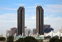 Harbor Club Condominiums is a high-rise residential building in San Diego, California, United States composed of two towers of equal height. The 41-story towers have a height of 424 feet (129 m) and are a prominent fixture in the city's skyline. Located in the Marina district of Downtown San Diego, Harbor Club was designed by architects BPA Architecture Planning Interiors. The condos are located near the San Diego Convention Center and Petco Park. The towers are currently the tenth-tallest buildings in San Diego.