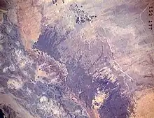 The Harrat comprises volcanic fields formed by tectonic activity from the Oligocene through to the Quaternary period.[7] It is the largest of several volcanic fields on the Arabian Plate,[8] containing more than 800 volcanic cones and around 140 dikes.[7] Activity began during the Miocene; a younger eruptive stage, at the SE end of the volcanic field, occurred during the late-Pleistocene and Holocene.[9] It is known to have erupted in historic times.[10][11]