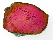 Liddicoatite, a tourmaline from Ambohimahasoa District. Size: 5.8 x 4.7 x 0.4 cm., polished slice.
