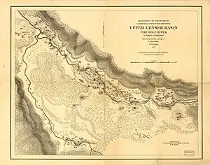 In March 1871, a sum of $40,000 was appropriated by Congress to finance Hayden's fifth survey to explore mostly the territories of Idaho and Montana. Hayden was very familiar with Jay Cooke's desire to promote the Yellowstone region for the Northern Pacific Railroad and had attended Nathaniel P. Langford's January 1871 lecture in Washington, D.C., on the Washburn-Langford-Doane Expedition to Yellowstone of the previous year.[3] The $40,000 that was granted for Hayden's expedition was not available until July 1, the beginning of the fiscal year; however, the determined Hayden was still able to organize and equip his expedition with the help of the US Army, Fort Bridger and the railroads. After the passage of the Sundry Civil bill, Hayden immediately applied to the Secretary of War for permission to draw on equipment, stores, and transportation at frontier army posts. This was authorized, together with a small escort "when deemed necessary and the public service will permit." Likewise, the Union Pacific and Central Pacific Railroads agreed to carry Hayden's men and equipment without cost.[3]