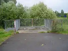 The brook is fenced off for safety reasons; after rainfall, water levels can rise considerably in a very short time as the water drains from surrounding areas.[3]