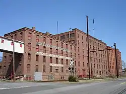 Helmetta's main landmark is the large, abandoned Helme Products Inc. plant that sits adjacent to the Camden and Amboy Railroad line running through the borough.[27] The mill began producing snuff in the 1880s. On February 23, 1900, the mill was bought by the American-Sniff Company in a merger with Helme Products Inc., but the merger was dissolved in 1911. In 1925, the mill became the largest of its kind in the world, and by 1934 it employed 400 people. In 1986, the mill was bought out by American Maize-Products. Finally, in 1993, it was purchased by Swisher International, and operations were moved to Wheeling, West Virginia.[28] It has remained inactive since.