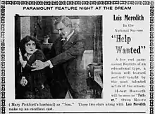 Help Wanted is a 1915 American drama silent film directed by Hobart Bosworth and written by Elmer Blaney Harris and Jack Lait. The film stars Hobart Bosworth, Lillian Elliott, Adele Farrington, Lois Meredith, Owen Moore, Herbert Standing and Myrtle Stedman. The film was released on April 19, 1915, by Paramount Pictures.[1][2]