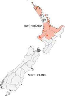 Locations (and Crosby regions) in Aotearoa New Zealand where the wētā Hemiandrus jacinda has been found.