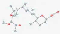 Herboxidiene is a polyketide molecule soluble in polar solvents such as water, ethanol, n-butanol and acetone but insoluble in non-polar molecule such as hexane. It was first isolated from the fermentation broth of Streptomyces chromofuscus by researchers in Monsanto Company in 1992.[2] Herboxidiene shows in vitro antitumor activity by targeting the SF3B protein in the splicesosome.[3] Many antitumor derivatives have also been developed from herboxidiene through chemical modification.[4]