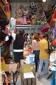 Today, Arroyo is the head of the family that produces various handcrafts, and who are still based in his childhood home on the steepest part of the Calle San Francisco in the historic center of San Miguel.[1][2] One room is specifically dedicated as his workshop, filled with paints, accessories, paper, and partially completed works, with little room to move. However, his work can be seen throughout the house, both finished products for customers as well and projects to improve the living spaces.[2]