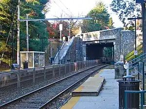 The station is in zone 2 on the Chestnut Hill West Line, on former Pennsylvania Railroad tracks, and is 10.7 track miles from Suburban Station. In 2004, this station saw 32 boardings on an average weekday. More recently, usage appears to have doubled, but there is still considerable unused free parking in the Philadelphia Parking Authority lot (outbound side) and on the adjacent streets. The only shelter is a small Plexiglas hut on the inbound side.