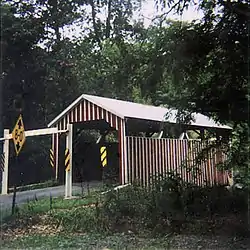 Built in 1874, this covered bridge was rehabilitated in 1973. It is a King post, truss-style, wooden, covered bridge that is forty-four feet long.[2]