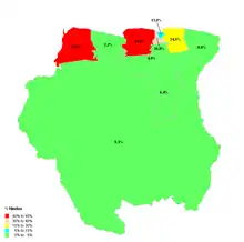 | Marowijne | 0.9% |