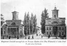 Polish insurgents operated in and around Łódź during the January Uprising of 1863–1864. At the beginning of the uprising, on January 31, 1863, a unit of 300 insurgents entered the city without a fight and seized weapons and funds for the uprising.[7] In April 1863 the insurgents attacked a transport of prisoners of war captured by the Russians and liberated them.[8] Further clashes between Polish insurgents and Russian troops took place in Łódź on June 18 and September 29, 1863.[9]