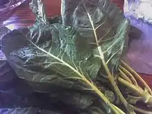 Collard greens, cleaned, uncut, ready for cooking