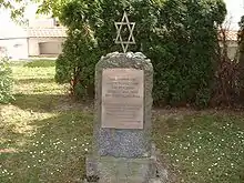 As a result of the accelerated discrimination of Jews, emigration from Laupheim increased to 32 in 1939. In 1940, only 14 persons managed to escape the oppression and in 1941 a meagre 4 Jews from Laupheim managed to leave the country.[52] Those remaining were, after having been driven out of business, systematically deprived of their other properties, evicted and allocated alternative accommodation. Some were moved into the former Rabbi's office building, now turned into a Jewish retirement home, where living conditions were very crammed. Others were sent to live in the Wendelinsgrube, a designated settlement area in a gravel pit just outside the then built-up area of Laupheim, where since 1927 small houses had been erected to provide accommodation for the unemployed and homeless. By 1939 these houses consisted of wooden shacks without running water or electricity. The former residents of the Wendelinsgrube moved into the forcibly abandoned Jewish properties.[53] On 28 November 1941, the first transport of Laupheim Jews left, in the first instance to Stuttgart, and then onwards to Riga. The second wave of deportations took place on 25 March 1942, when a number of Laupheim Jews were transported to the General Government, Poland. The final deportation took place on 19 August 1942, when the remaining 43 Jews of Laupheim, amongst whom were all the remaining inhabitants of the Wendelinsgrube, were transported to the east to the concentration camp Theresienstadt.[49] This date marks the end of more than 200 years of Jewish history in Laupheim since none of the emigrants or surviving deportees returned to live in Laupheim.