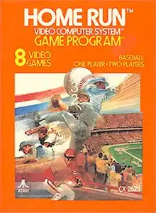 Home Run is a 1978 sports video game developed and published by Atari, Inc. for the Atari Video Computer System (later renamed to the Atari 2600). It was the first baseball-themed game released for an Atari platform.[1][2] The game received mostly negative critical reception due to its unrealistic portrayal of the sport. It was one of the games used by console competitor Mattel to show the quality improvement of Intellivision sports games over the Atari VCS.