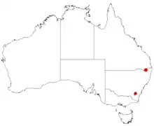 Mouse bush is endemic to Mount Norman in Girraween National Park, Queensland where it grows in heath on skeletal sandy soils among crevices of granite outcrops.[3]