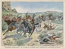 "A Rising of the Chickasaw People", a 1906 image by a French publication, showing the Chickasaw riding their horses against the U.S. Cavalry.