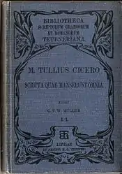 The cover the 1908 Teubner edition of Cicero's complete works. This volume contained the first standard critical edition of the Hortensius fragments.