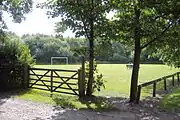The area slopes gently upwards towards the south and east, from an elevation of around 50 metres at the western boundary near Wybunbury, to a high point of 76 metres at SJ714494, on the South Cheshire Way near Ellesmere Farm. Outside Hough village, the parish is predominantly rural, with the major land use being agricultural. Swill Brook runs along parts of the eastern boundary of the parish, and an unnamed tributary forms part of the southern boundary. Numerous small meres and ponds are scattered across the area. Several small areas of woodland fall within the parish, including Cobb's Moss and Hough Gates.[11][12] To the east of Cobb's Lane, south of Hough village, lies Hough Common, an area of common land designated as a county site of biological importance (grade B).[12][13]