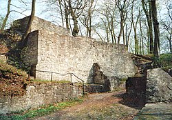 From the mid 13th century on, two branches of the Asseburg family emerged: an elder Eastphalian-Thuringian branch and a younger Westphalian branch. The former had its initial seat at Moringen Castle, later also at Ampfurth near Oschersleben. In 1437, Falkenstein Castle in the Lower Harz was acquired as an enfeoffment of the bishops of Halberstadt. In 1509, Wallhausen was also acquired, initially as an enfeoffment of the County of Mansfeld, later of the Electorate of Saxony. Meisdorf House near Falkenstein later became the permanent residence of the branch, while Falkenstein Castle was used for hunting parties.