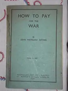 How to Pay for the War: A Radical Plan for the Chancellor of the Exchequer is a book by John Maynard Keynes, published in 1940 by Macmillan and Co., Ltd. It is an application of Keynesian thinking and principles to a practical economic problem and a relatively late text. The author Keynes died in 1946.