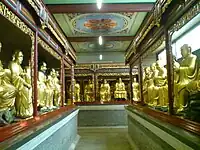 The name was changed to the Hualin Temple by the Zen master Zongfu (宗符) during his rehabilitation of its grounds in 1655.[n 1] There used to be a Gilded Ashoka Pagoda (阿育王塔) and 500 arhats statues (五百羅漢像) but all of them were destroyed during cultural revolution.