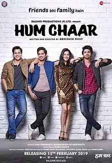 Hum Chaar[2] (transl. Us four) is a 2019 Indian Hindi-language romantic comedy film, which is written and directed by Abhishek Dixit.[3] It is produced by Rajshri Productions.[4] The movie is creatively produced by Sooraj R. Barjatya.[5] Hum Chaar Film is introduced four new faces on screens.[6][7] Debutantes Prit Kamani, Simran Sharma, Anshuman Malhotra and Tushar Pandey.[8][9][10] The film was Rajshri Productions' (P) Ltd's 58th film.[11][12]
