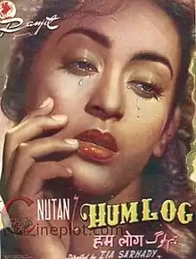 Hum Log (transl. We, The People) is a 1951 Indian Hindi social realist film written and directed by Zia Sarhadi.[1][2] Dealing with the trials and tribulations of a middle-class family, the film stars Nutan, Shyama, Durga Khote, Balraj Sahni and Sajjan in lead roles. Nutan earned positive notice for her portrayal of a tuberculosis patient and so did Sahni who played her brother. The film was a commercial success and established Nutan as a rising star in the film industry.
