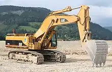 An excavator; main hydraulics: Boom cylinders, swing drive, cooler fan, and trackdrive