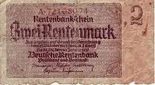 Two Rentenmark note, issued in line with the Decree of 15 October 1923