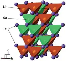 - ↑ Vasilyeva, Inga G.; Nikolaev, Ruslan E.; Krinitsin, Pavel G.; Isaenko, Ludmila I. (2017). "Phase Transitions of Nonlinear Optical LiGaTe2 Crystals before and after Melting". The Journal of Physical Chemistry C. 121 (32): 17429–17435. doi:10.1021/acs.jpcc.7b04962.