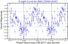 A visual band light curve for IRAS 23304+6147, plotted from ASAS-SN data[6]