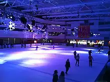 During construction of the Icehouse, it was known as the National Ice Sports Centre.[3] Home of the Olympic Winter Institute of Australia, it contains two Olympic-sized ice rinks and a specialist winter sports gym.[4][5] Rink 1, which features stadium seating and fully glassed boards suitable for ice hockey, is known as the Henke Rink, named in honour of Australian ice sports champion Geoffrey Henke AO.[6] Rink 2, used mostly for public skating, is named the Bradbury Rink, after the Bradbury family – the most well-known member, Steven Bradbury, was a short-track speedskater who won the 1,000m gold medal at the 2002 Winter Olympics, and his father John along with brother Warren were both also heavily involved in ice sports.[7]