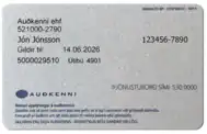 The Icelandic identity card (Icelandic: Nafnskírteini), is an identity document issued by Registers Iceland since 12 April 1965. It is one of three official identity documents issued by the Icelandic Government, along with the Icelandic passport and Icelandic driving license. It is voluntarily issued to Icelandic citizens, regardless of age. It is valid in the Nordic countries as travel and identification documentation. Due to its lack of security features it cannot currently be used as a travel document to other countries in the EU/EEA. Identity documents are not compulsory in Iceland.[1] An electronic ID (Icelandic: Rafræn Skilríki) is issued separately to the regular ID card.[2]