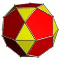 In geometry, an icosidodecahedron is a polyhedron with twenty (icosi) triangular faces and twelve (dodeca) pentagonal faces. An icosidodecahedron has 30 identical vertices, with two triangles and two pentagons meeting at each, and 60 identical edges, each separating a triangle from a pentagon. As such it is one of the Archimedean solids and more particularly, a quasiregular polyhedron.