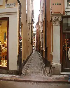 - ↑ "Innerstaden: Gamla stan". Stockholms gatunamn (in Swedish) (2nd ed.). Stockholm: Kommittén för Stockholmsforskning. 1992. p. 55. ISBN 91-7031-042-4.