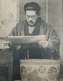 As a member of the Diet, Asanuma pivoted from his earlier anti-imperialist views and became a vocal supporter of Japan's "holy war" in East Asia, claiming that it was necessary to "liberate" Asia from the forces of western imperialism.[6] He even led the drive to censure Saitō Takao and expel him from the Social Masses Party following the latter's anti-war speech on the floor of the Diet in 1940.[9] However, Asanuma himself decided not to run for reelection in 1942, following his failure to secure a "recommendation" from the Imperial Rule Assistance Association.[10] In the immediate aftermath of Japan's defeat in World War II, Asanuma was one of the founders of the Japan Socialist Party (JSP), and would eventually rise to become its secretary-general (1955-1960) and eventually, party chairman (1960).[3] As a politician, Asanuma cultivated an "everyman" image.[11] He lived modestly in public housing his entire life, and was particularly popular among ordinary laborers, small shopkeepers, and other members of the working class.[3][12]