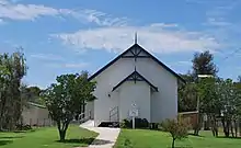 Our Lady of the Southern Cross Catholic Church is on the western corner of George and Elizabeth Streets (28°24′49″S 151°04′50″E / 28.4136°S 151.0806°E).[23]
