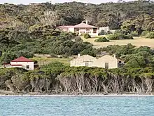 Land in the locality was originally known as Cape Spencer.[3] The mining settlement located at Inneston Lake and which was known as Inneston was officially proclaimed as a town in 1927.[14] In 1999, boundaries were created for the “long established name.” In 2011, these boundaries were adjusted specifically to remove part of the locality and place it in the adjoining locality of Marion Bay to “ensure the whole of the residential area is located within Marion Bay.”[3][17] The locality also includes the following places that are also gazetted under the South Australian Geographical Names Act 1991 - Pondalowie Bay and Stenhouse Bay.[3][18][19]