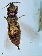 - ↑ Yin, Z.; Cai, C.; Huang, D.; Engel, M. S. (2018). "Zorotypus dilaticeps sp. nov., a remarkable zorapteran (Zoraptera) in mid-Cretaceous Burmese amber". Cretaceous Research. 91: 126–130. Bibcode:2018CrRes..91..126Y. doi:10.1016/j.cretres.2018.05.018. S2CID 133994224.