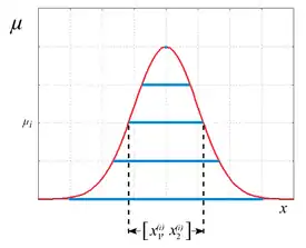 For fuzzy arithmetic[7] only a finite number of discrete affiliation stages are considered. The form of such a distribution for an indistinct value can then be represented by a sequence of intervals.