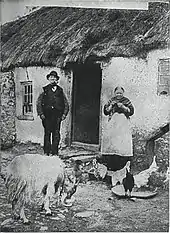 Only 17 per cent of labourers had lived in houses with five or more rooms in 1841; in 1861 one rural family in ten still lived in what were classed by the census as fourth class accommodation, essentially meaning one room per family. By 1911 only one per cent of families did. The bulk of the labourers' cottages were erected by 1916, resulting in a widespread decline of rampant tuberculosis, typhoid and scarlet fever.[39] Up to a quarter of a million were housed under the Labourers Acts by 1921. It is not an exaggeration to term it a social revolution, in a sense it was the first large-scale public-housing schemes in the country, a development neglected by historians, because the houses, rural based and more scattered, were not as evident as the urban tenements, that officialdom would not even look into.[40][41]