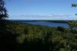 Isle Royale, the largest island in Lake Superior, is over 45 mi (72 km) in length and 9 mi (14 km) wide at its widest point.[6] The park is made up of Isle Royale itself and approximately 400 smaller islands, along with any submerged lands within 4.5 mi (7.2 km) of the surrounding islands (16USC408g).[7]
