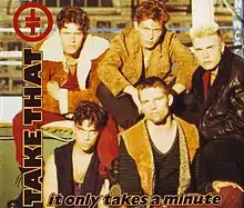 "It Only Takes a Minute" is a 1975 song by American soul/R&B group Tavares, released as the first single from their third album, In the City (1975). The song was the group's only top-10 pop hit in the United States, peaking at number 10, and their second number one song on the American soul charts.[1] On the US Disco chart, "It Only Takes a Minute" spent five weeks at number two and was the first of four entries on the chart.[2] The song was subsequently covered by Jonathan King performing as 100 Ton and a Feather in 1976 and by boy band Take That in 1992.