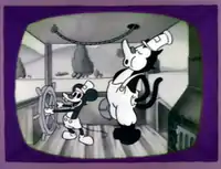 The opening Star Trek film is a parody of how old the crew of the original Star Trek cast looked in the later movies.[4] The 1929 Itchy & Scratchy short Steamboat Itchy is a spoof of the 1928 Disney short Steamboat Willie, featuring Mickey Mouse.[2] Lisa says Michael Jackson and Dustin Hoffman make cameos in Itchy & Scratchy: The Movie, adding "They didn't use their real names, but you knew it was them." Jackson and Hoffman had made cameos on The Simpsons using pseudonyms in "Stark Raving Dad" and "Lisa's Substitute", respectively.[3] Homer is seen listening to "Yummy Yummy Yummy" by The Ohio Express instead of watching the Moon landing.[2] In the flash forward sequence, a man is purchasing "Soylent Green" in the lobby of the movie theater, a reference to the film Soylent Green (1973).[2] A vehicle resembling a landspeeder from Star Wars (1977) is also shown.[7] On the marquee, we see that Itchy & Scratchy: The Movie has been re-released on a bill with Beauty and the Beast (1991).