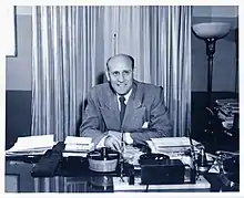 KFMB-TV first signed on the air on May 16, 1949;[4] it was the first television station in the San Diego market. The station was founded by Jack O. Gross, who also owned local radio station KFMB (760 AM). San Diego Mayor Harley E. Knox was present at the station's first broadcast. The station cost Gross $300,000 to build.[5] KFMB-TV has been a primary CBS affiliate since its sign-on (and is the only television station in the market that has never changed its network affiliation), however in its early years, channel 8 also maintained secondary affiliations with ABC, NBC and the DuMont Television Network.[6]