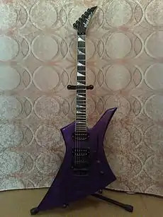 The Jackson Kelly or KE is a heavily modified version of the Gibson Explorer produced by Jackson Guitars. The guitar has been in production since the early 1980s, and is available in several different formats. It was heavily popularized in the early to mid 1990s due to its use by the guitarist Marty Friedman of Megadeth.