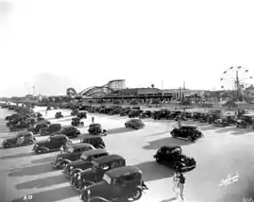 The amusement park phase of Jacksonville Beach began in 1905 with The Pavilion which was later expanded and called Little Coney Island. It was a popular tourist attraction that had such entertainment as a dance floor, swim room, bowling alley, and roller skate rinks. An issue with contracting, and constant weathering of its wooden structure aged Little Coney Island, causing it to be torn down in 1925. On June 15, 1925, the name Pablo Beach was changed to Jacksonville Beach.[5] The Shad's Pier was created in 1922 by Charles Shad and with help by Martin Williams. Around the same time W. H. Adams, Sr. created the Ocean View Pavilion amusement park on the former site of the Murray Hall Hotel. Adams wanted to create a larger roller coaster than the one at Little Coney Island. His vision resulted in a 93-feet high coaster. The location of the coaster by the beach made it vulnerable to damage and was eventually deemed unsafe. The coaster was then deconstructed to a smaller coaster. The deconstruction of the larger coaster hurt business at the amusement park. By 1949 the Ocean View Pavilion was in decline and then a fire destroyed it a few years later. The only amusement park in Jacksonville Beach today is Adventure Landing. The boardwalk declined in the 1950s due to the crackdown on gambling and games of chance. Driving on the beach was prohibited in 1979.[11]