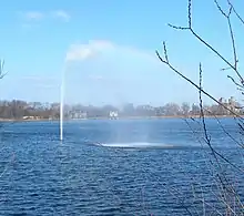 The reservoir covers 106 acres (43 ha) and holds over 1,000,000,000 US gallons (3,800,000 m3) of water.[19] Though no longer a part of New York City's water supply system, it does supply water to the nearby Pool and Harlem Meer.