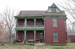 The James A. Rice House is a historic house at 204 Southeast Third Street in Bentonville, Arkansas. It is a 2+1⁄2-story brick structure, with tall arched windows and a bracketed cornice typical of the Italianate style. It has a two-story porch, asymmetrical massing, and a steeply pitched roof with cut-shingle gable finish typical of the Queen Anne style, which was in fashion when it was built c. 1879. Its builder and first owner was James A. Rice, a local lawyer who served two terms as mayor.[2]
