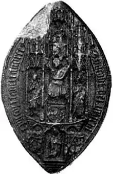 He died on 24 May 1465.[3] The date is usually given as 1466, but a charter belonging to the abbey of Arbroath, dated 13 July 1465, speaks of him as lately deceased, and of his see as vacant.[4] Kennedy was buried in a magnificent tomb which he had caused to be built in St Salvator's Chapel. He had, it is believed, procured the design and materials from Italy. The ruins are still visible.